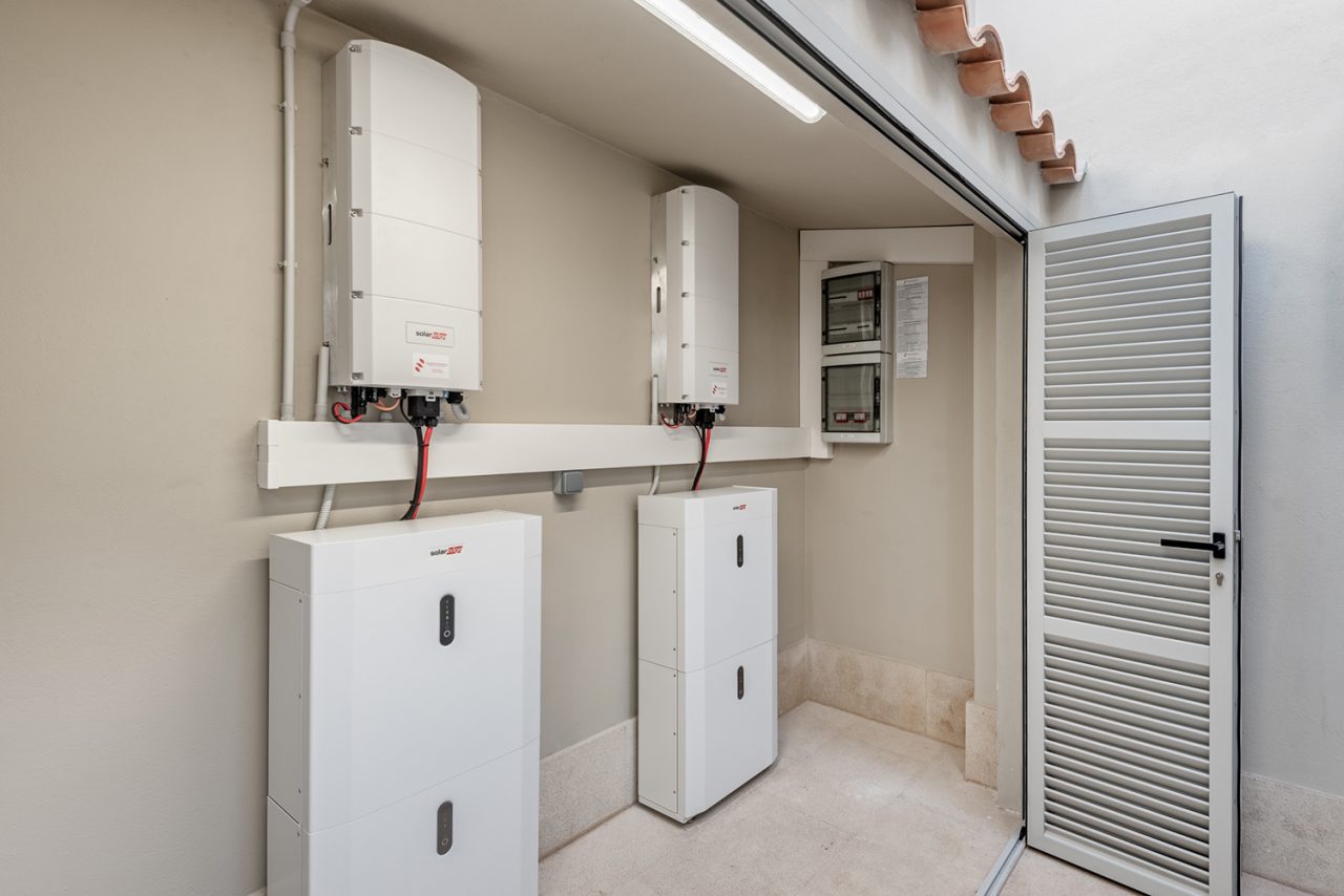 Sofern aus optischen oder Platzgründen erwünscht, lassen wir auch kleinere Baumaßnahmen („caseta“ – ein kleiner Anbau) zur optimalen Integration der Elektrokomponenten wie Wechselrichter, Batterie, oder Ladestation anfertigen.